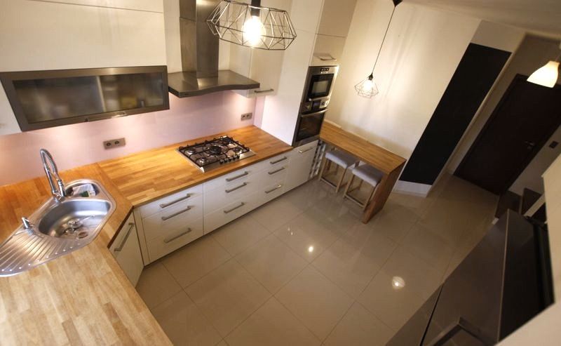 kuchnia na wymiar z dębowym blatem