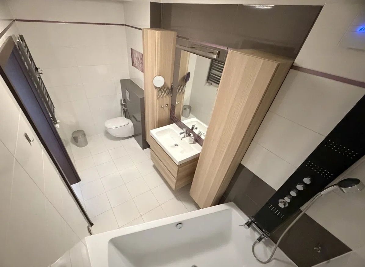 łazienka z wanną i ogrzewaniem podłogowym