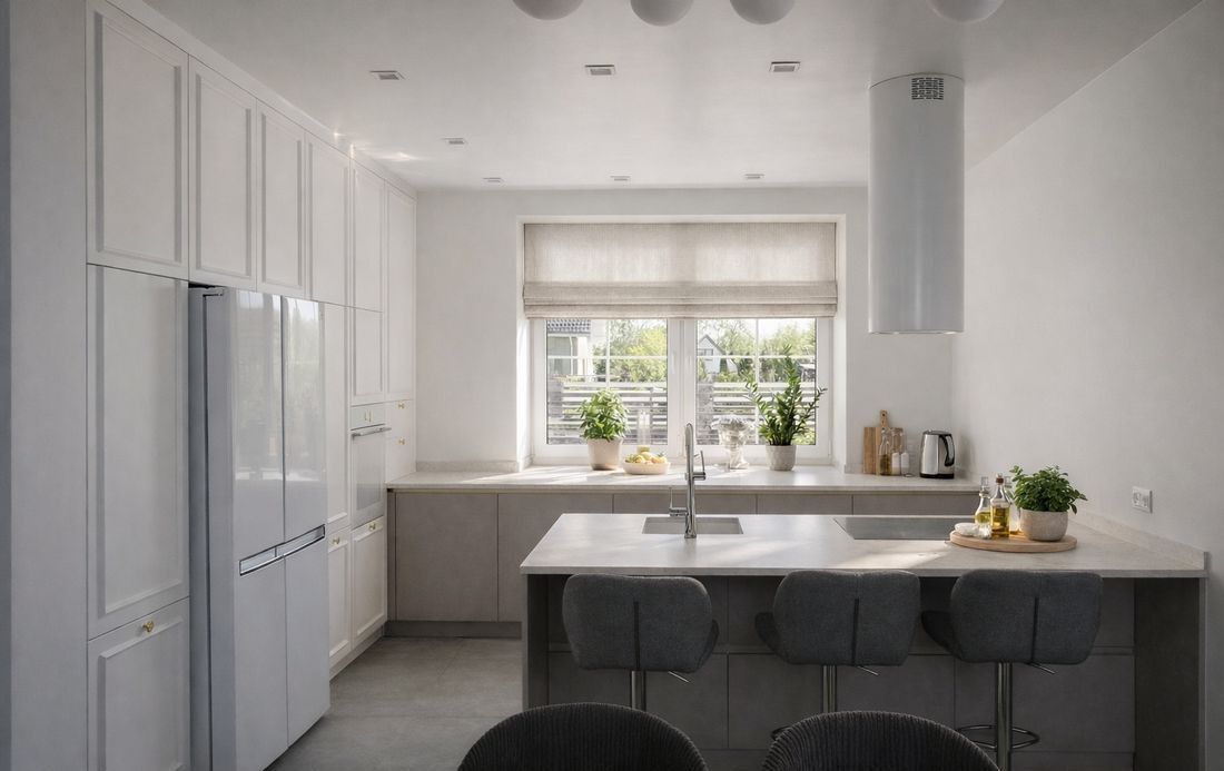 jasny salon z otwartą kuchnią - serce domu