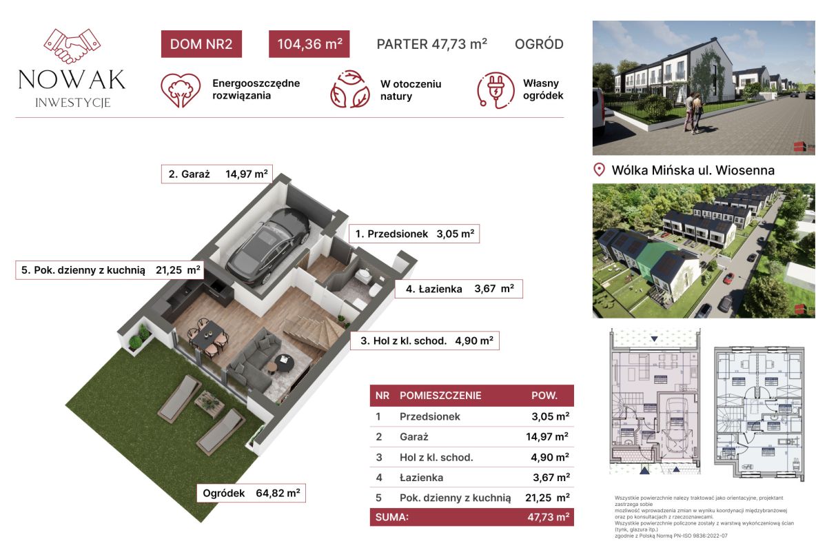 Segment nr 2 o powierzchni 104,26 m2 z ogródkiem 64,82 m2 na działce 171 m2.