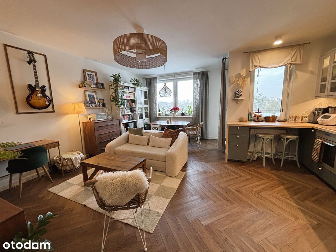 Układ: Funkcjonalny i rodzinny - przestronny salon z aneksem kuchennym (28,2 m²) oraz dwa oddzielne pokoje idealne na sypialnie rodziców i dzieci.