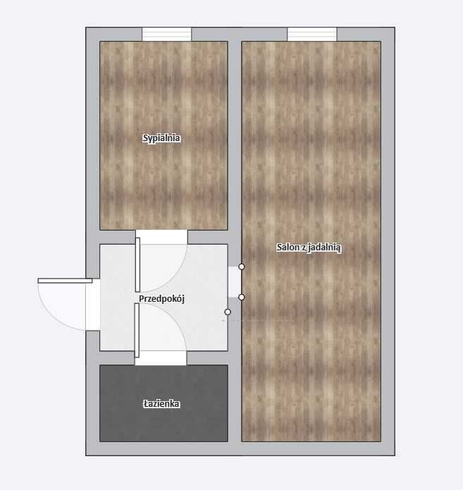 Funkcjonalny układ: Jasny salon z aneksem kuchennym oraz oddzielny pokój idealny na sypialnię lub gabinet.