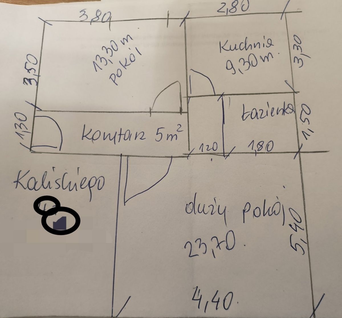- kuchnia 9,30m2 z pawlaczem nad przejściem z korytarza