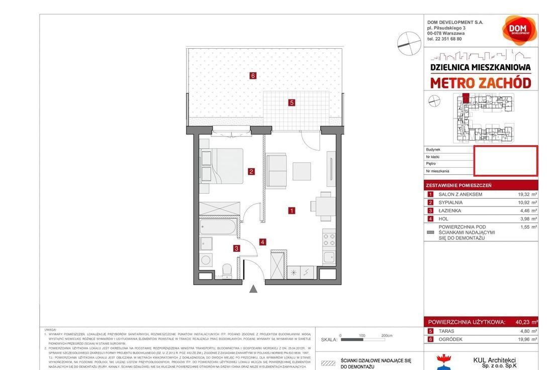 Mieszkanie o powierzchni: 40.23 m2 znajduje się na 2 piętrze i składa się z: