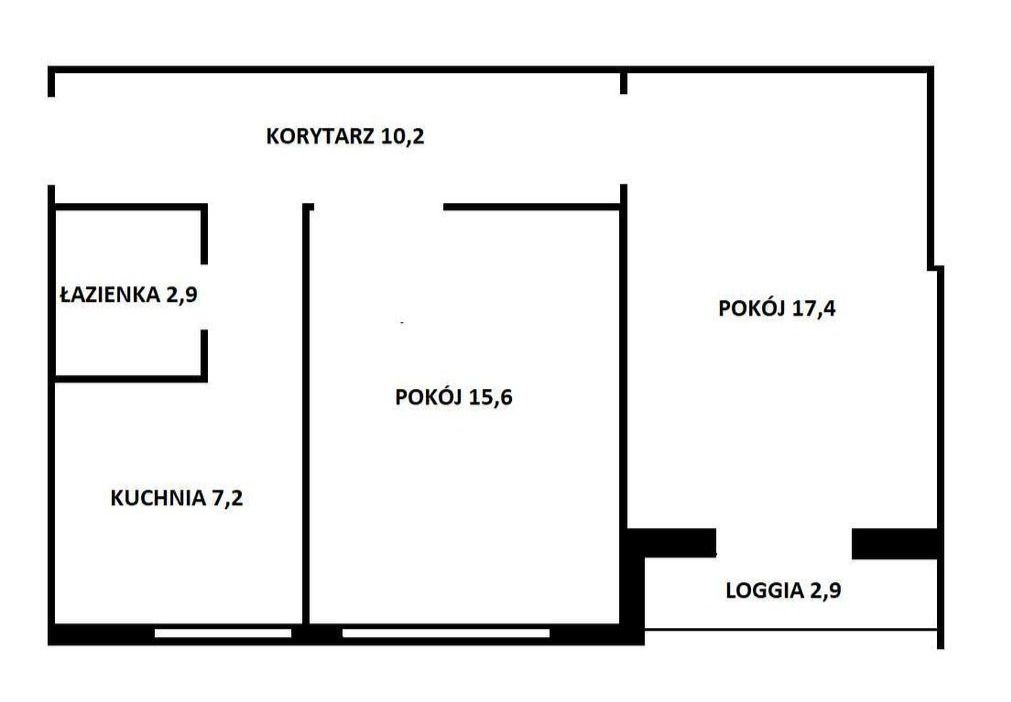 - salon 17,4 m² z wyjściem na loggię 2,9 m²