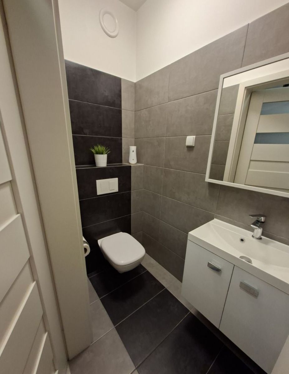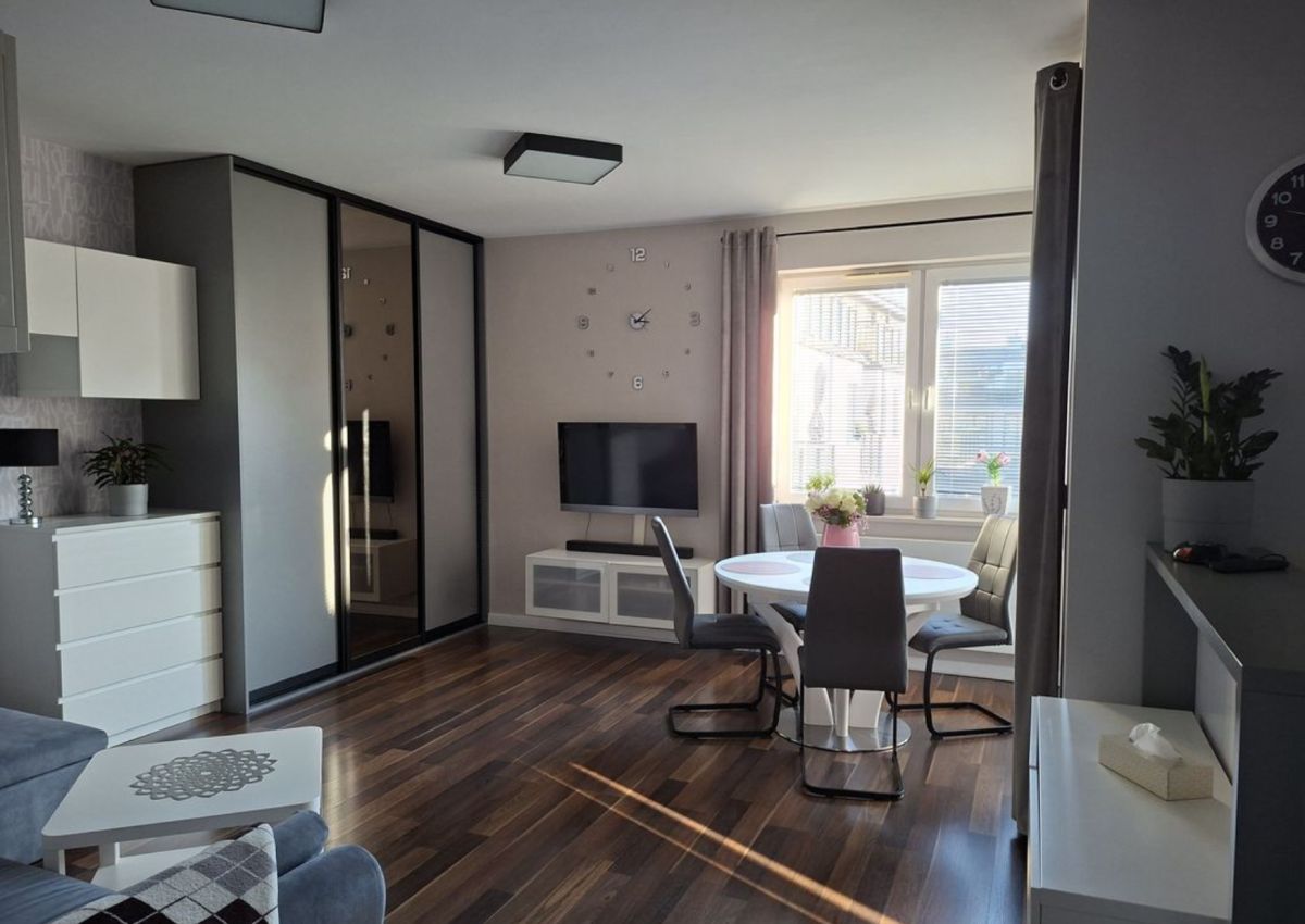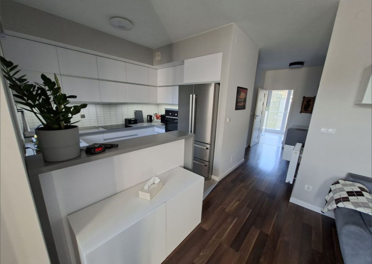 W cenie mieszkania uwzględniono zabudowę kuchenną wykonaną na wymiar wraz ze sprzętem AGD, szafy wnękowe, meble łazienkowe, a także pralkę i suszarkę do ubrań.