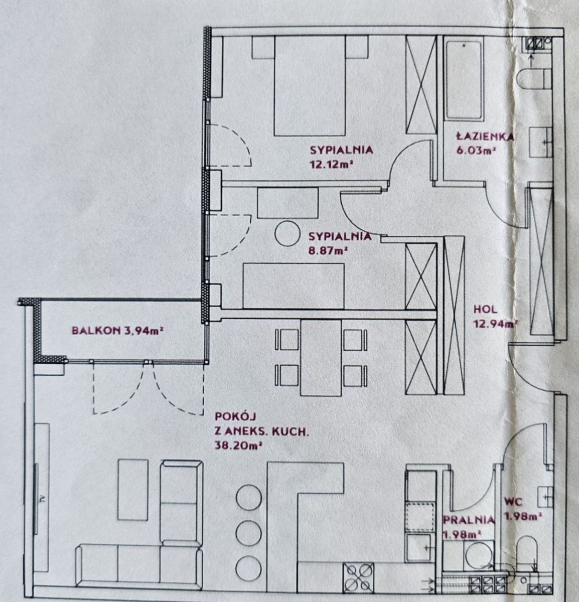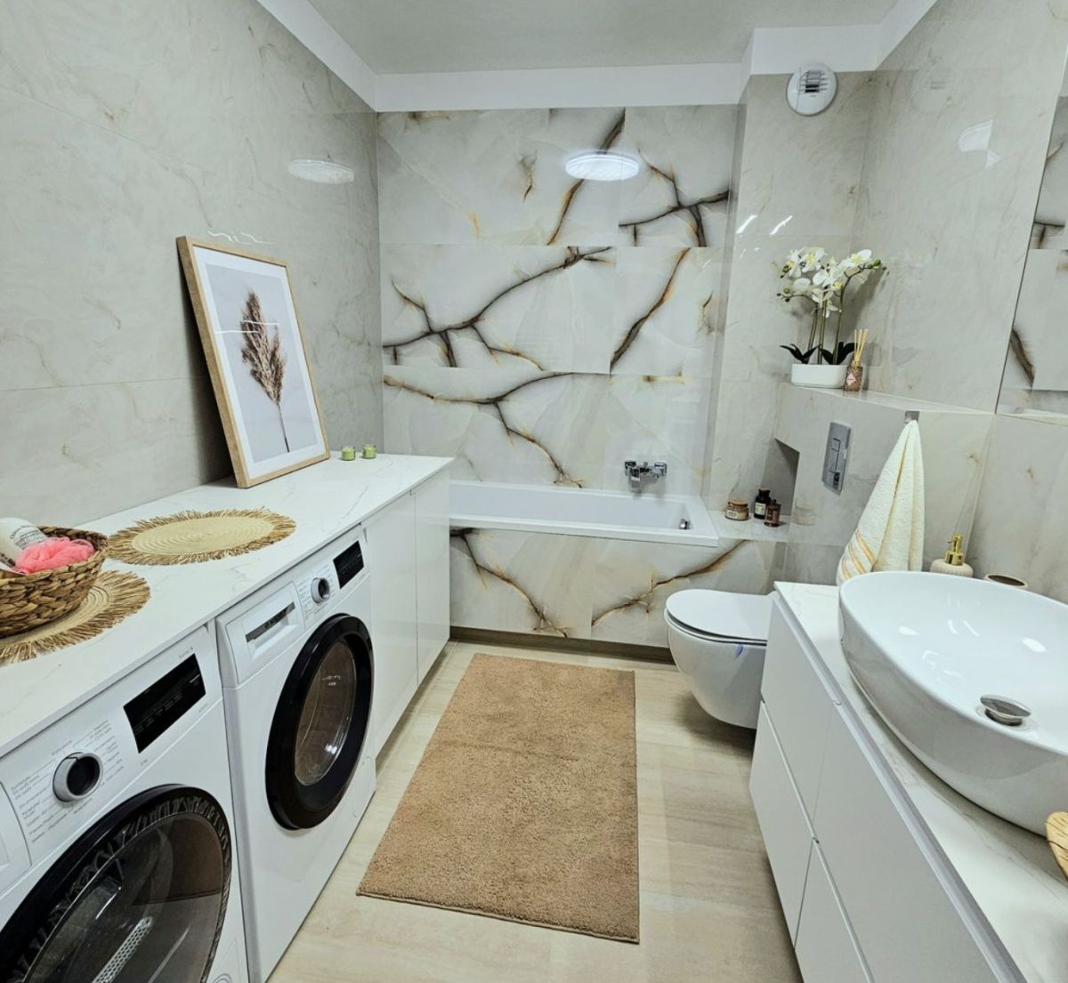 - łazienki z wanną i WC, pralką oraz suszarką do ubrań,
