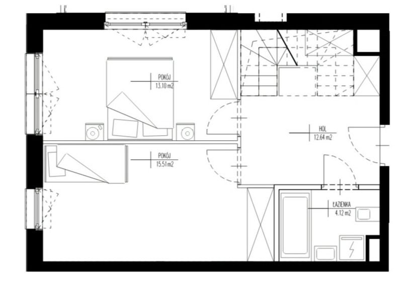- przestronny hol wejściowy z zabudowaną szafą na wymiar 12,64m2