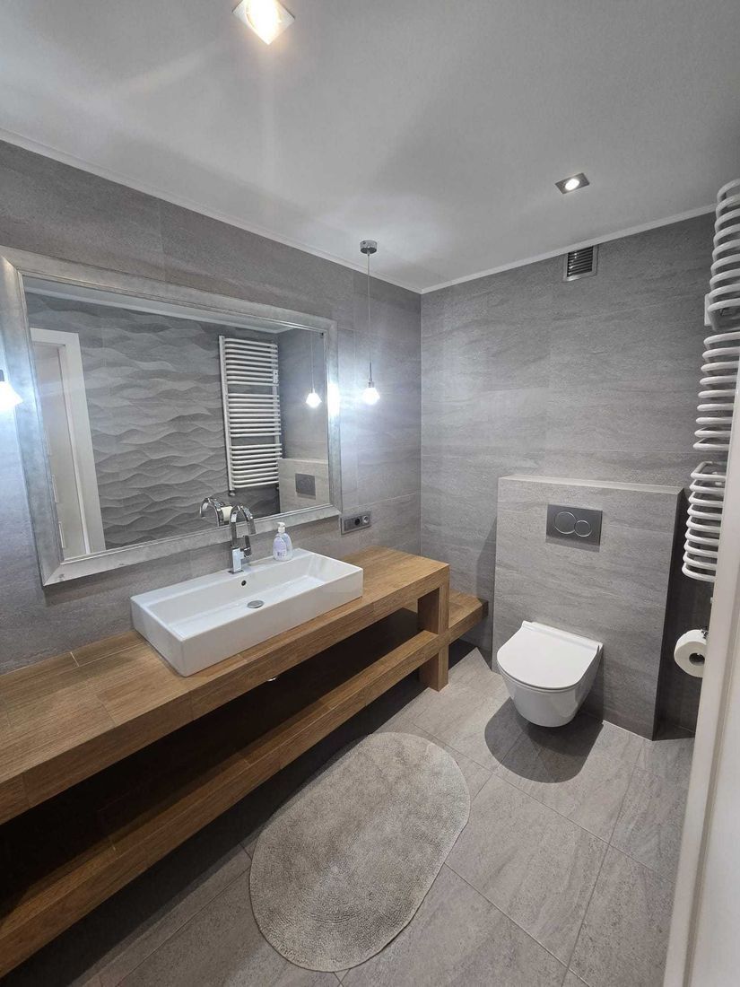 Mieszkanie jest gotowe do zamieszkania i dostępne od zaraz. Wszystkie urządzenia i materiały wykorzystane w mieszkaniu są wysokiej klasy i standardzie. Idealne do zamieszkania bez nakładów finansowych. Czyste, jasne bez obciążeń i wad prawnych. W salonie i sypialniach na podłodze deska z drewna palisander, olejowana.