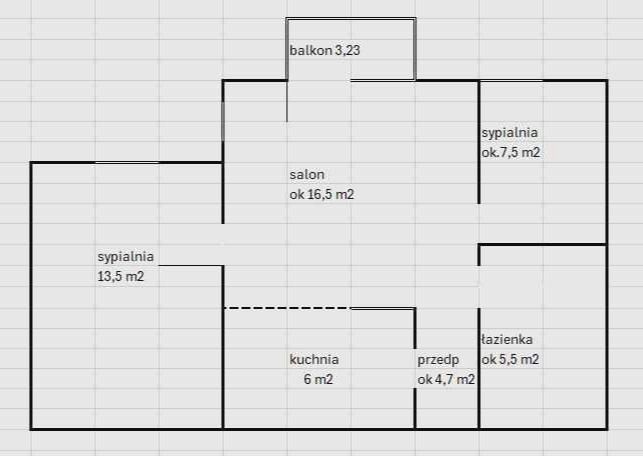 - salon ok.16 m2 z aneksem kuchennym 6m2 z wyjściem na balkon