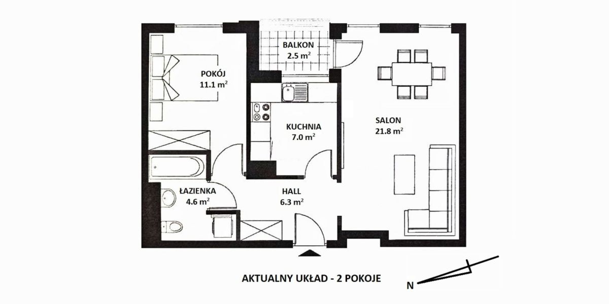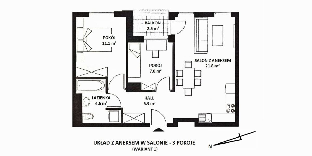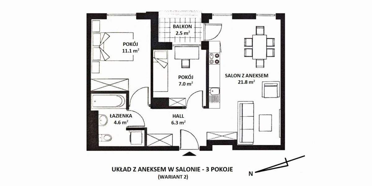 - Salon - 21,8 m2 - przestronny z dużymi oknami i wyjściem na loggię.