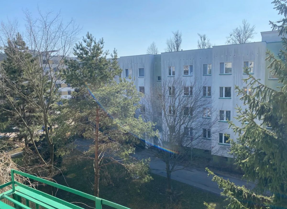 Widok z okien na stronę południową (duży pokój i 1 sypialnia) i północną (kuchnia i 2 sypialnie).