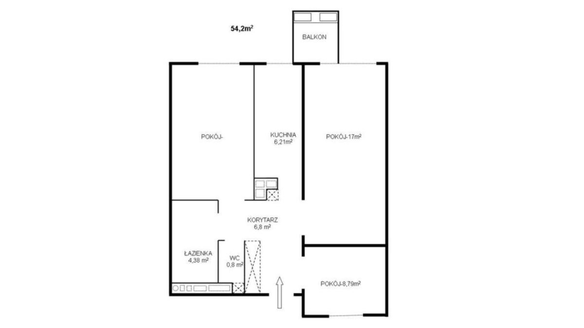 - Toaleta/WC o powierzchni: 0,8 m2