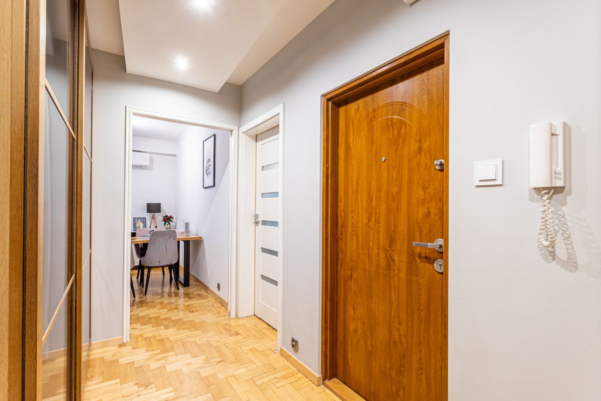 W całym mieszkaniu drewniany bukowy parkiet. W salonie i sypialni - klimatyzacja.