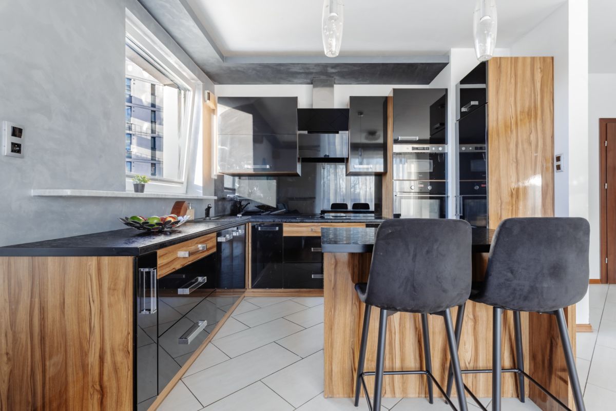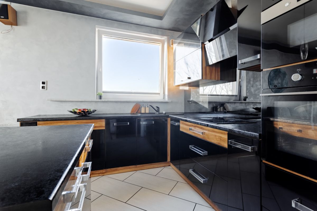 - salonu połączonego z widną kuchnią i wyjściem na loggię