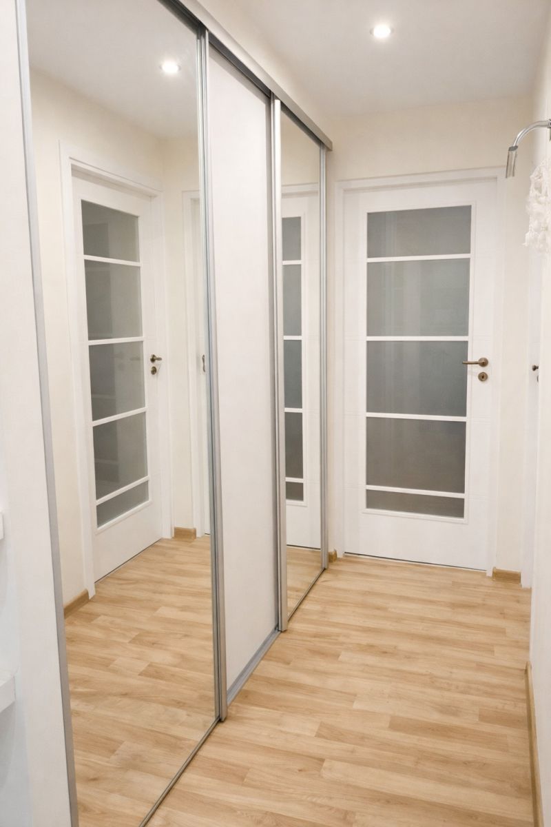 funkcjonalny przedpokój z dużą, pojemną szafą,