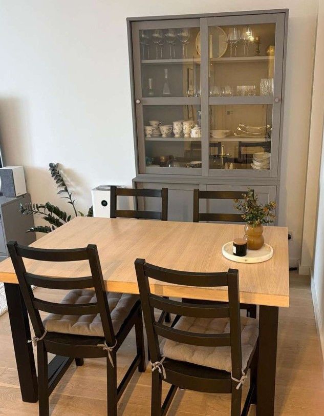 W nieruchomości królują naturalne materiały: olejowana deska dębowa na podłodze, blaty z litego dębu w kuchni oraz szlachetny marmur w łazience.