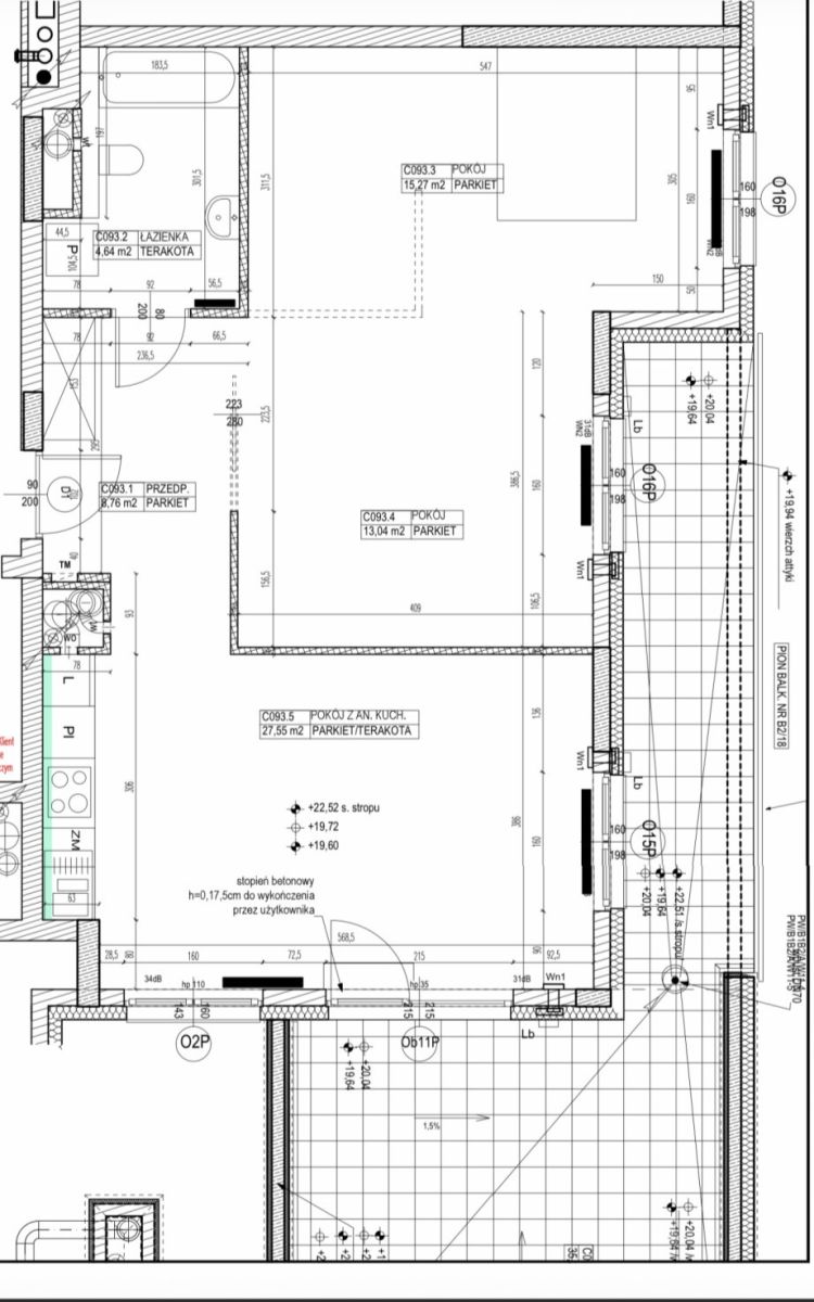 Do mieszkania przylega duży taras około 35m2, częściowo zadaszony.