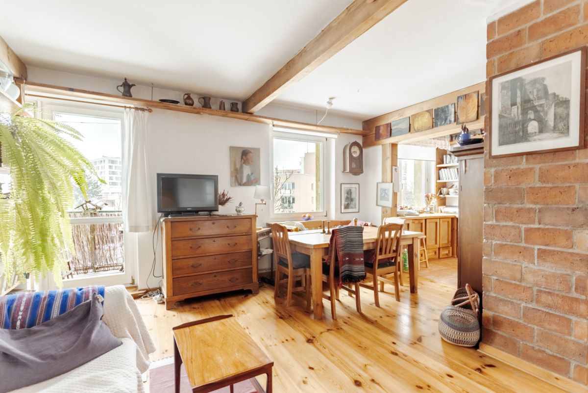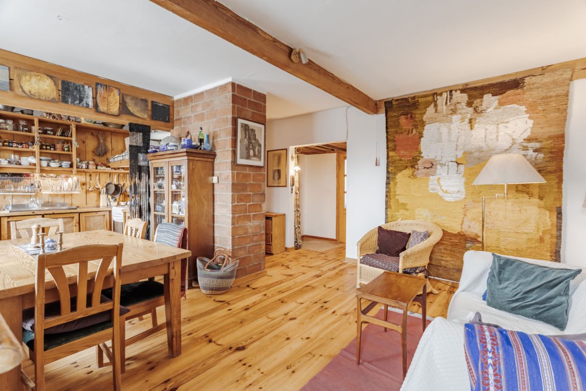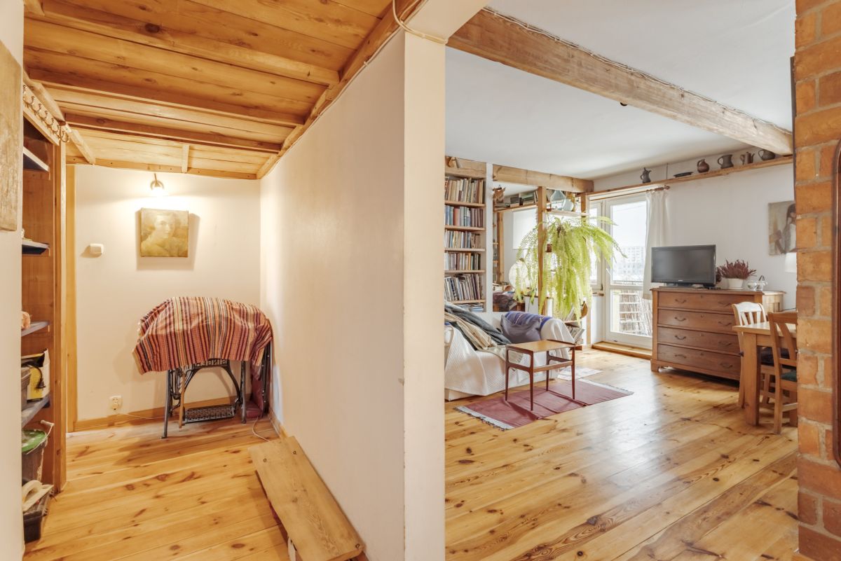 Mieszkanie o charakterystycznym i rustykalnym klimacie w stylu wiejskiego domu, zachowujące swą unikalną atmosferę pomimo warszawskiej lokalizacji.