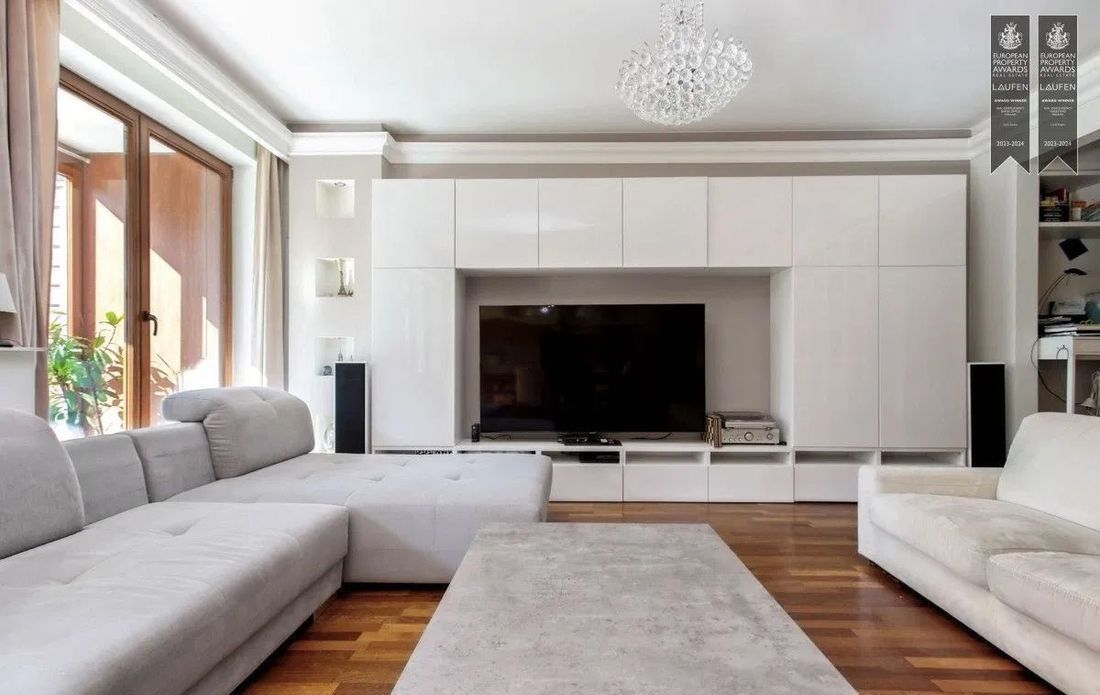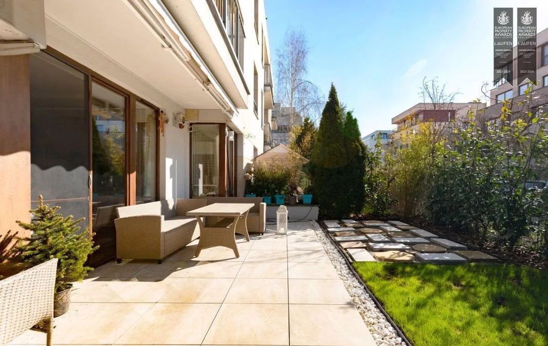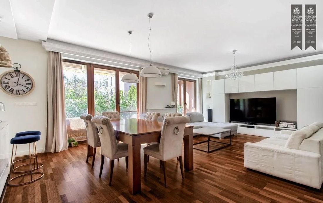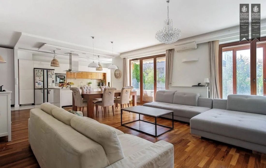 Biuro nieruchomości Pure Estates ma przyjemność zaprezentować apartament na osiedlu Ostoja Wilanów z 2 tarasami, ogrodem i ogrodem zimowym.