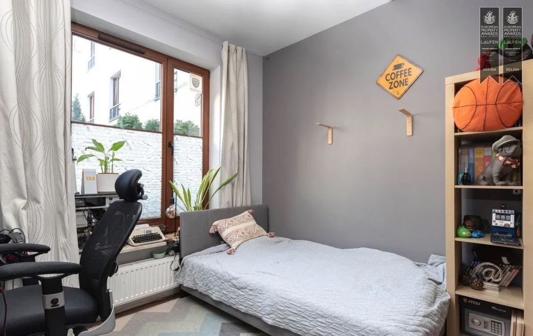 Na piętrze znajdują się 3 lokale mieszkalne. Budynek o wysokim standardzie wykończenia, na klatkach kamień naturalny, zadbane części wspólne (patio, plac zabaw). O bezpieczeństwo mieszkańców dba monitoring i ochrona.