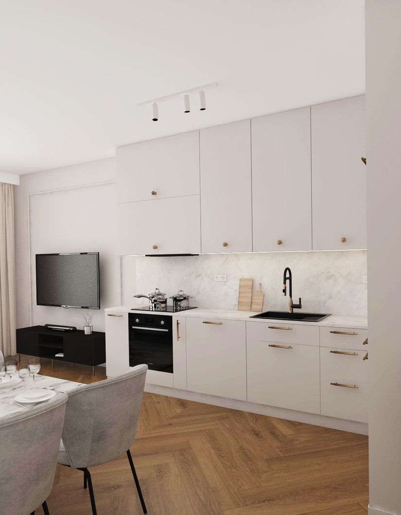 Mieszkanie do sprzedaży będzie posiadać zabudowę stałą według projektu widocznego na zdjęciach.
