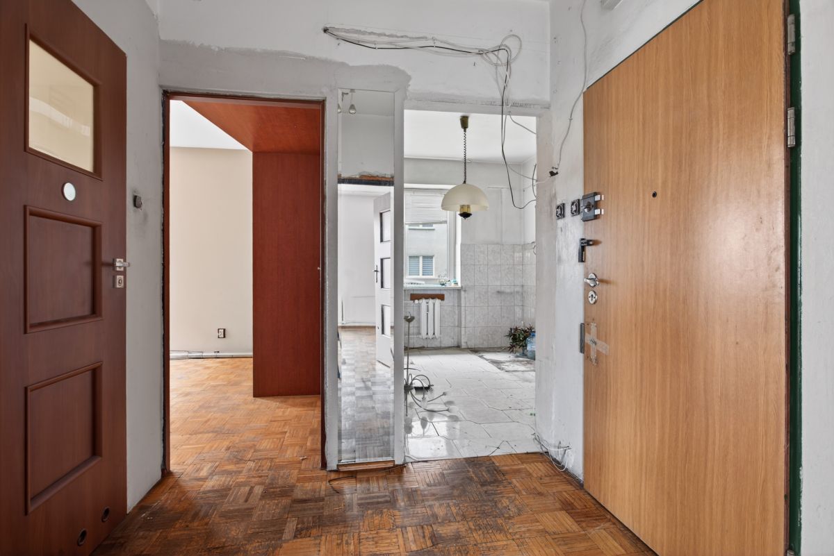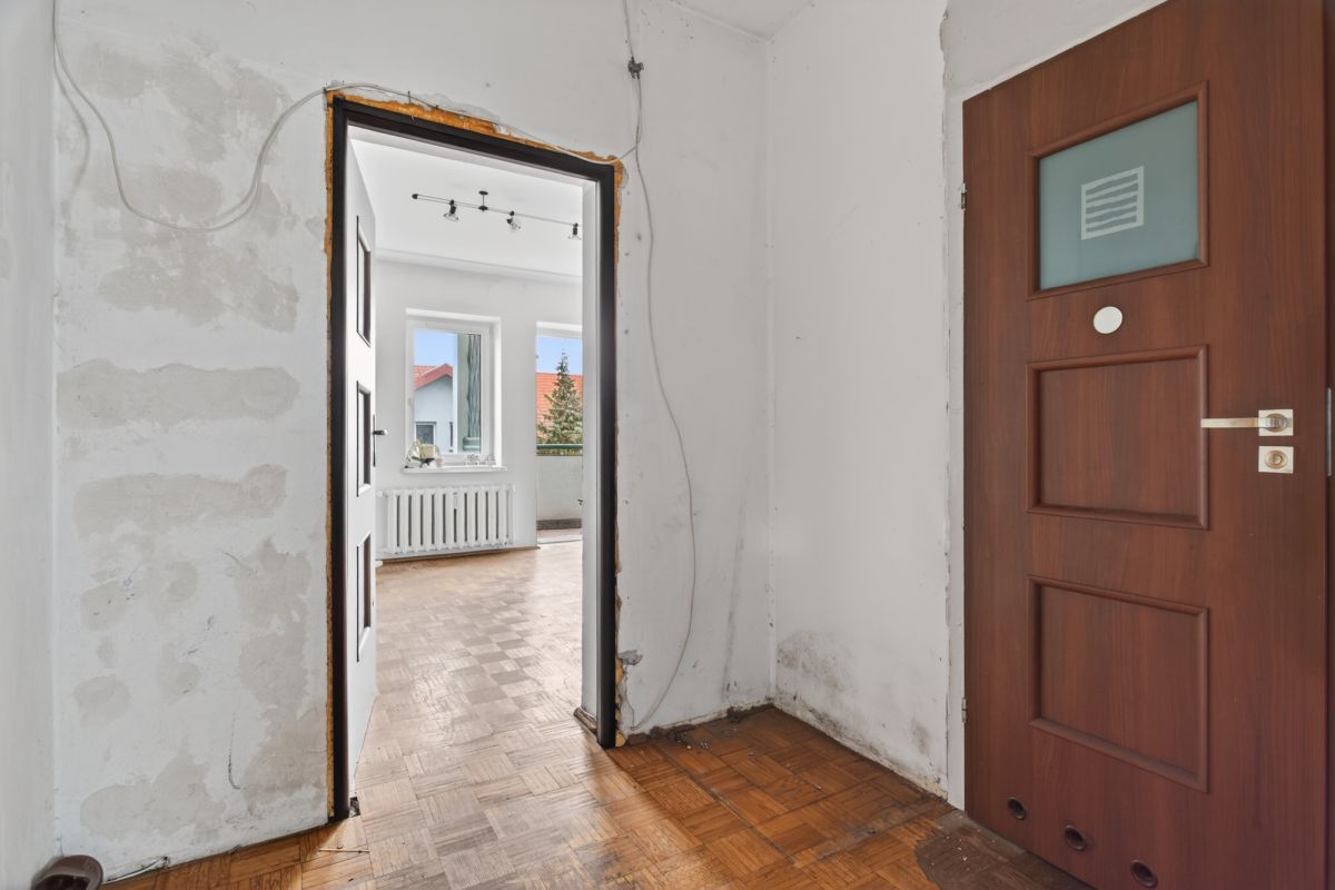 Mieszkanie rozkładowe, z widokiem na trzy strony świata, z potencjałem, do własnej aranżacji. Widok z salonu na domy jednorodzinne i zieleń. Jest założona księga wieczysta.