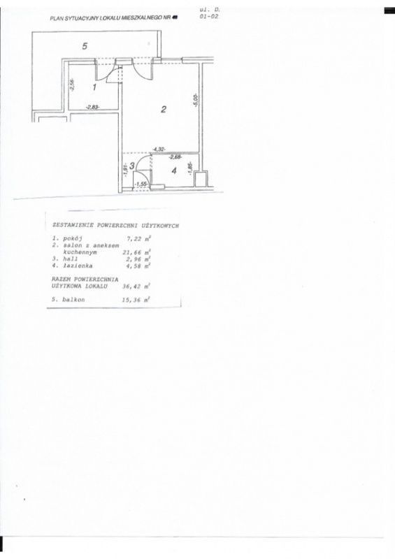 Mieszkanie o powierzchni: 36 m2 znajduje się na 5 piętrze i składa się z: