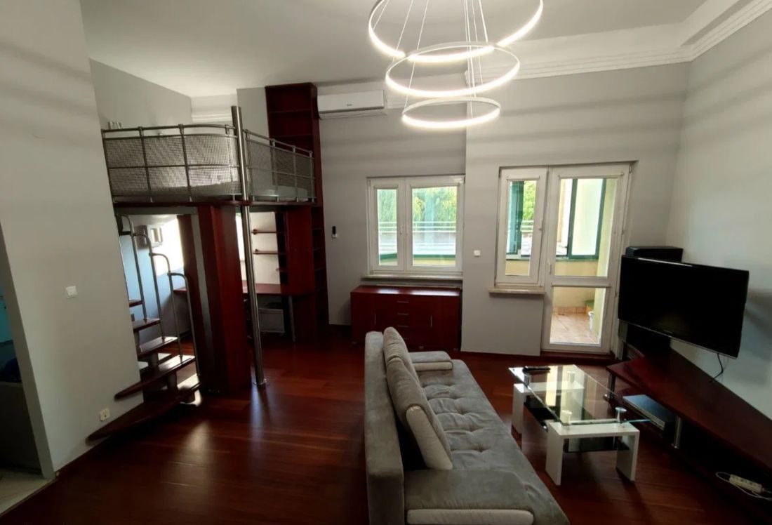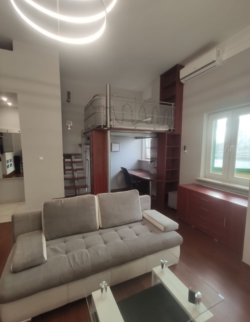 Mieszkanie typu open space z antresolą i loggią, przestronne i ustawne, z funkcjonalnym układem pomieszczeń. Antresola pełni funkcję sypialni, a przestrzeń pod nią może zostać wykorzystana jako strefa do pracy lub przechowywania. Lokal jest gotowy do wprowadzenia się, natomiast dla bardziej wymagających może stanowić bazę do odświeżenia i własnej aranżacji.