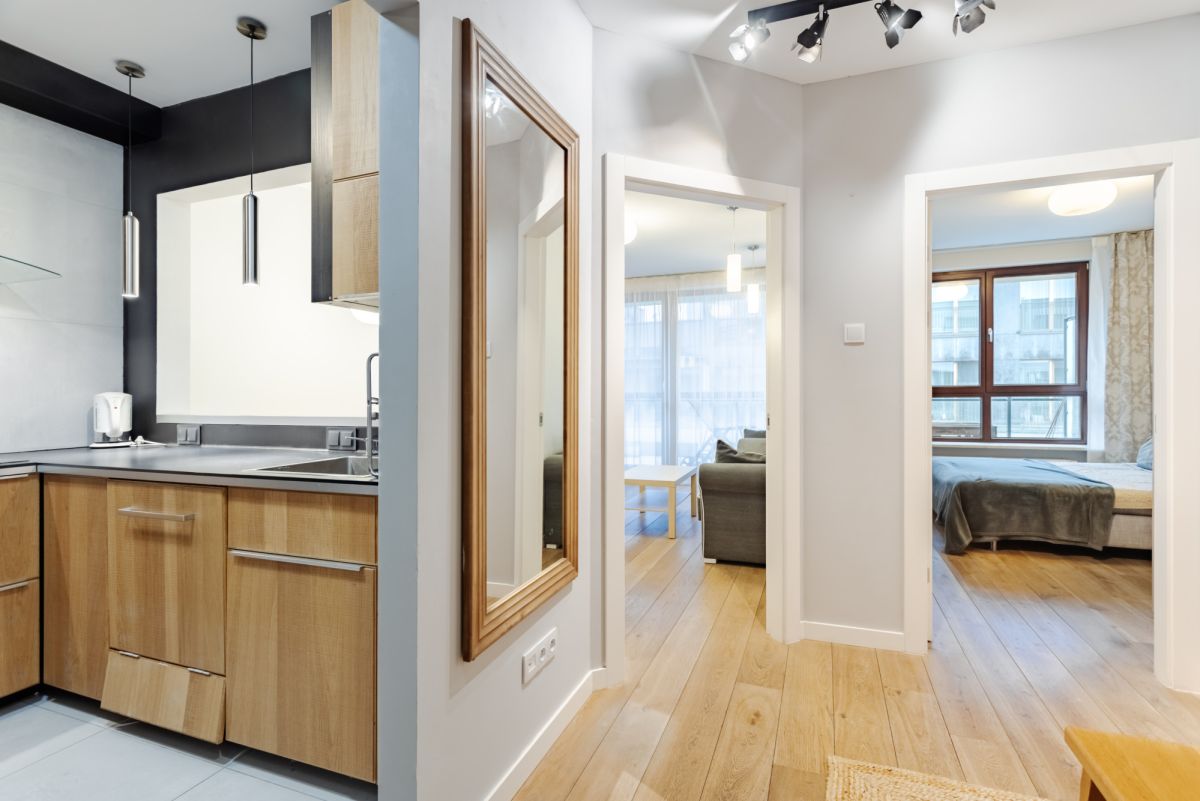 - kuchni, połączonej z salonem poprzez okno wewnętrzne;