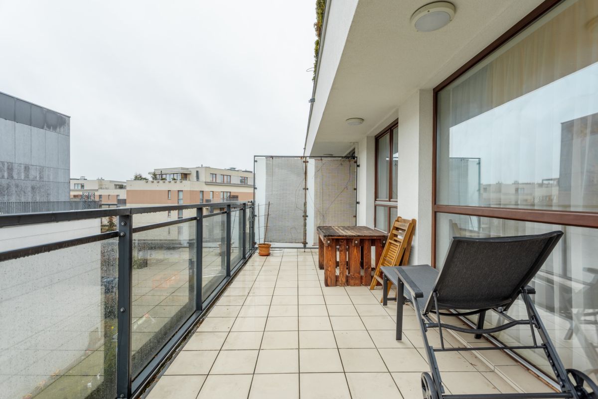 Dwupokojowe mieszkanie z tarasem zlokalizowane w bardzo cichej części Miasteczka Wilanów - przy ulicy Hlonda.
