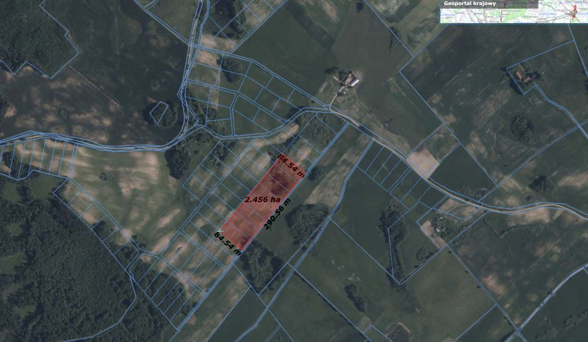 Działka numerze 238/14, 238/15, 238/16, 238/17, 238/18, 238/19, 238/20, 238/21 każda o powierzchni o 3 100 m2 w sumie 8 działek co daje nam powierzchnię 24 800 m2.