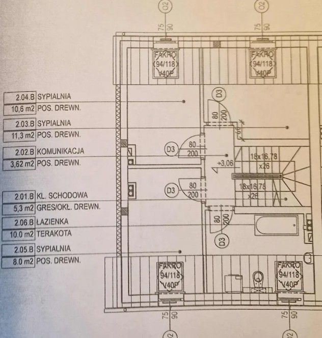 Piętro: 3 wygodne sypialnie, każda po ok. 11 m 2, oraz duża (11 m2) łazienka z oknem, co zapewnia komfort każdemu domownikowi.