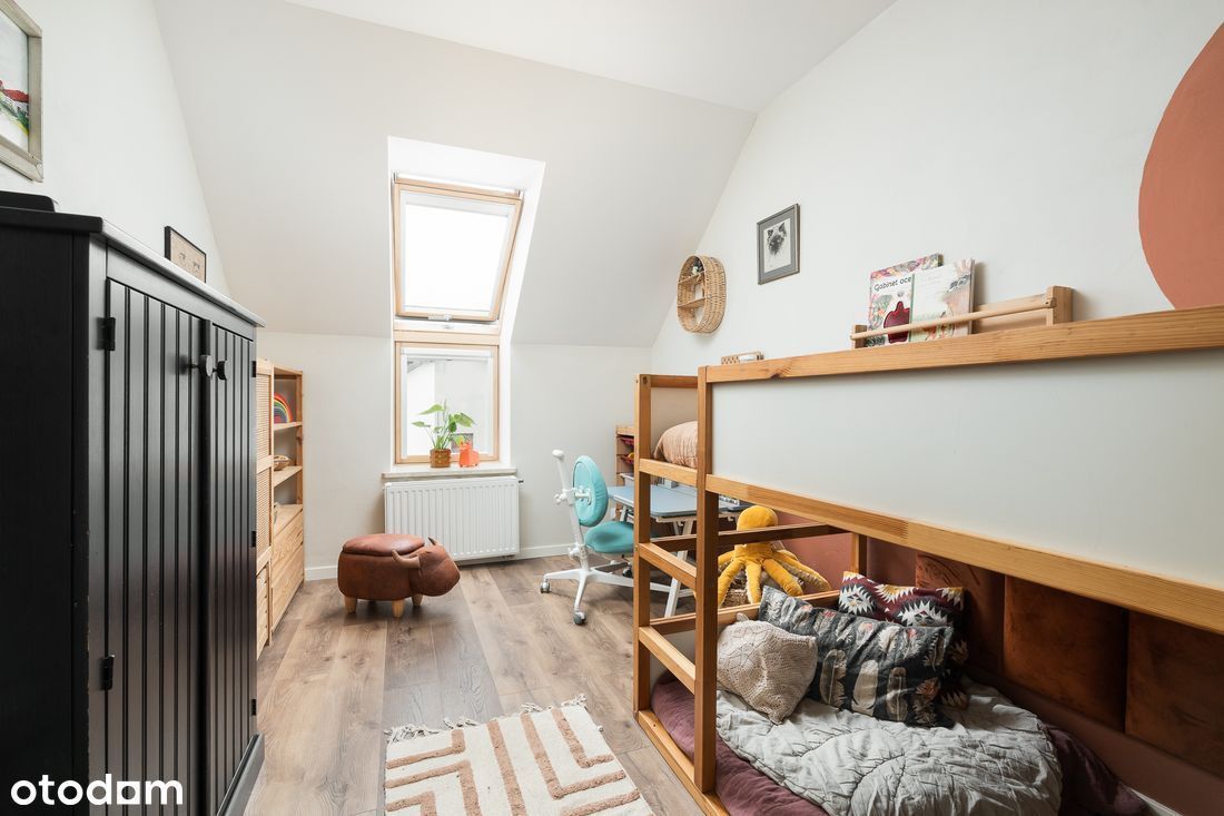 Nieruchomość z 2021 roku (posiada rękojmię/gwarancję dewelopera) i ma powierzchnię 98 m² oraz dodatkowe poddasze o łącznej wielkości ok. 30 m² - do własnej aranżacji. Może tu powstać bawialnia dla dzieci, gabinet, siłownia albo przestrzeń dla gości.