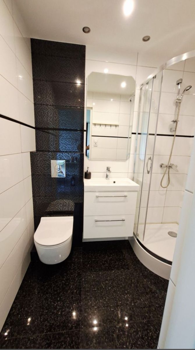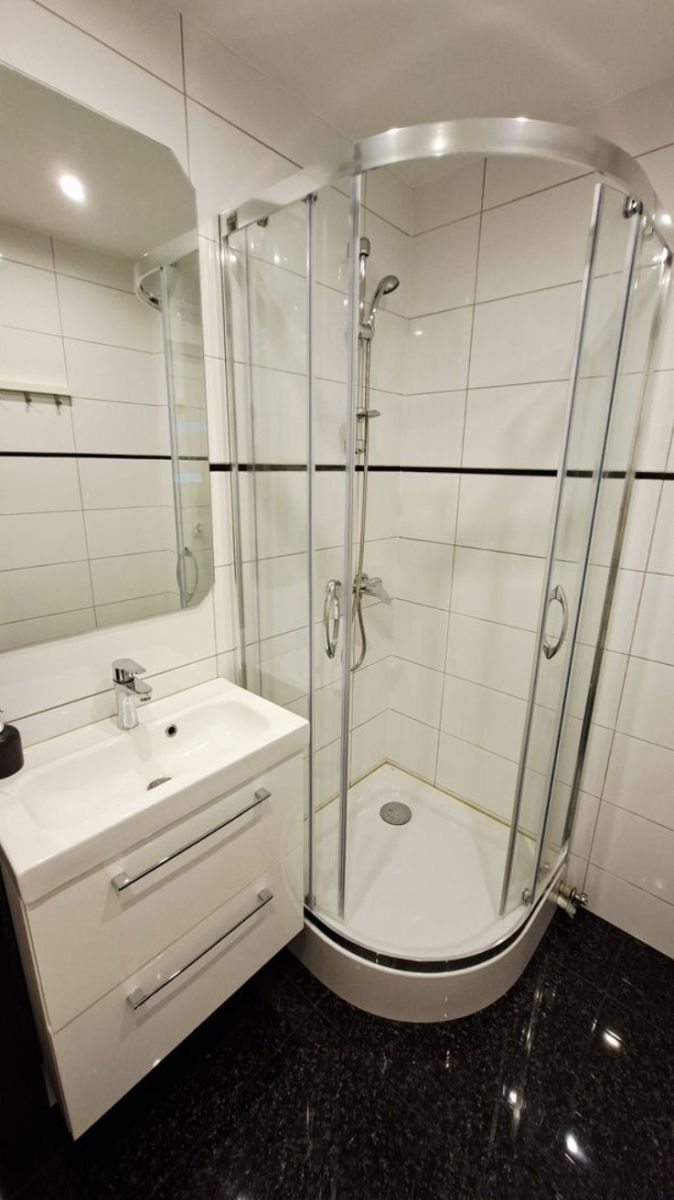 - łazienki z kabiną prysznicową, umywalką i WC,