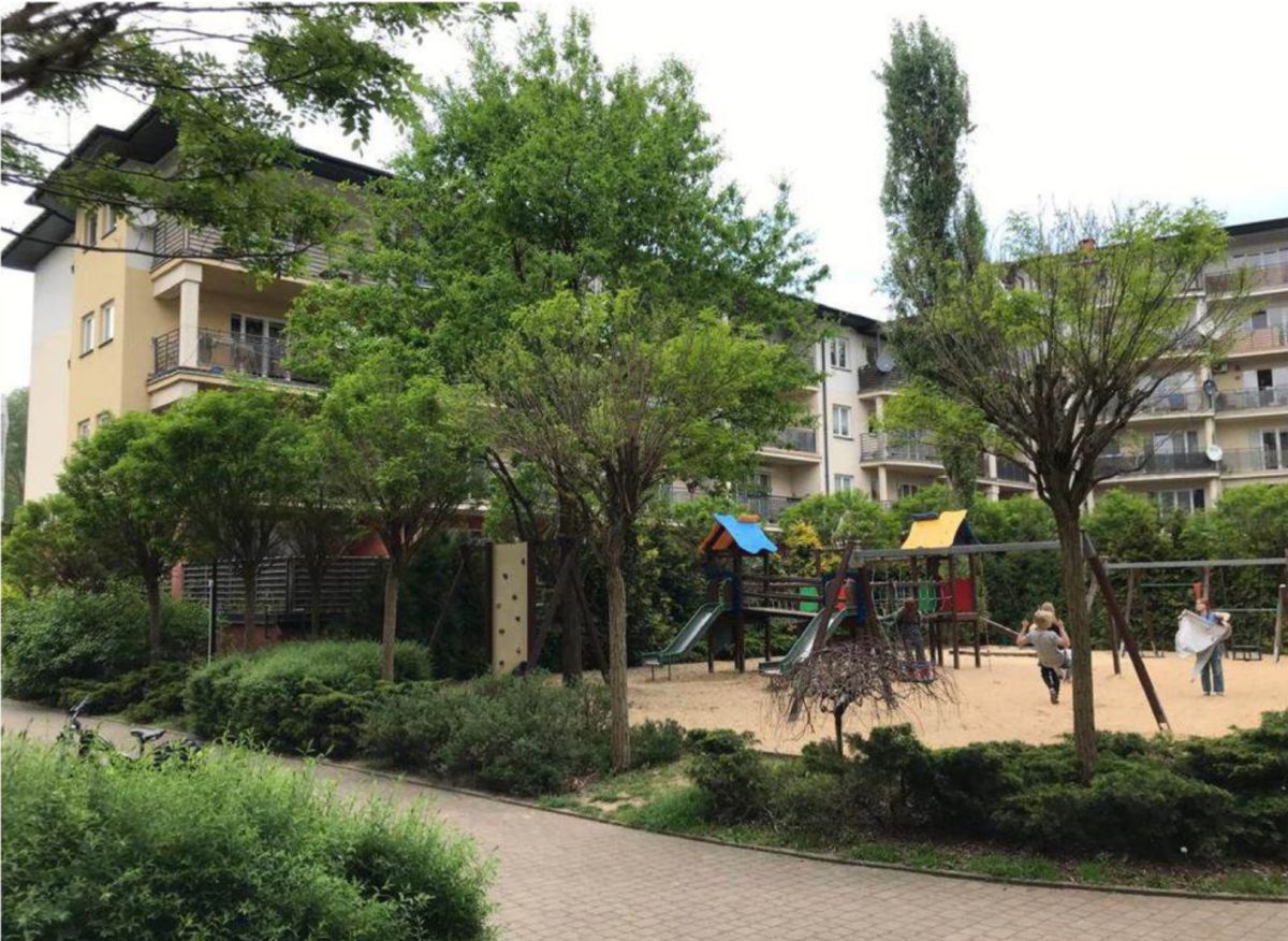 Mieszkanie mieści się na terenie kameralnego, ogrodzonego kompleksu dwóch budynków, otoczonych zielenią i dużym, zadbanym patio.