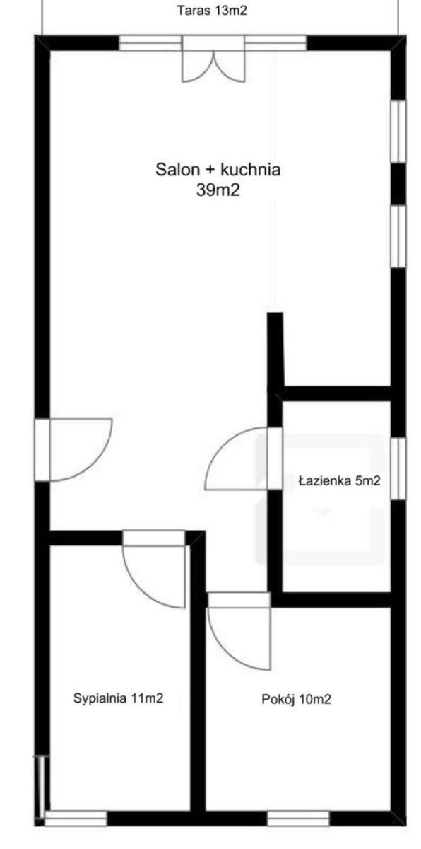 - dużego tarasu o powierzchni: 13 m2.