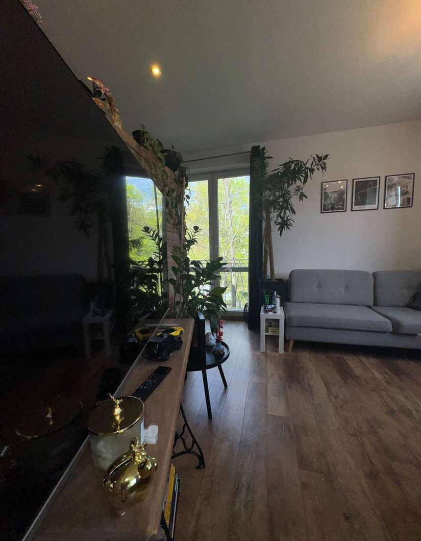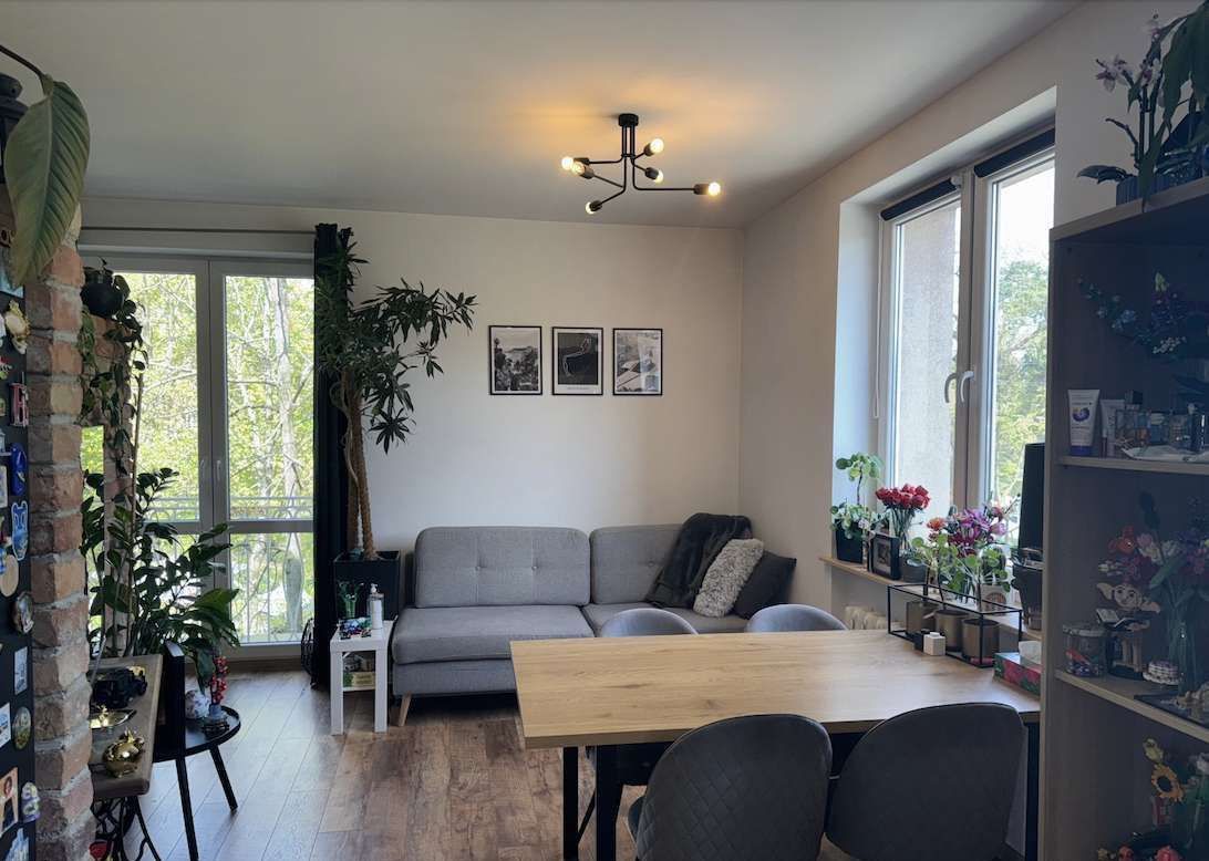 Wyposażenie: sprzedawane z pełnym umeblowaniem (kanapa, łóżko, meble IKEA) oraz AGD (lodówka, pralko-suszarka, zmywarka, piecyk)