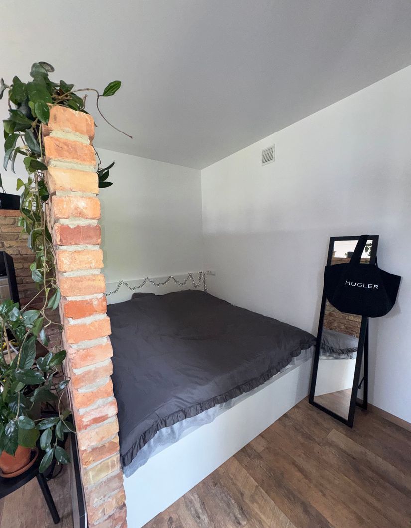 Układ: przestronna część dzienna z klimatycznie oddzieloną strefą sypialnianą, aneks kuchenny, nowoczesna łazienka