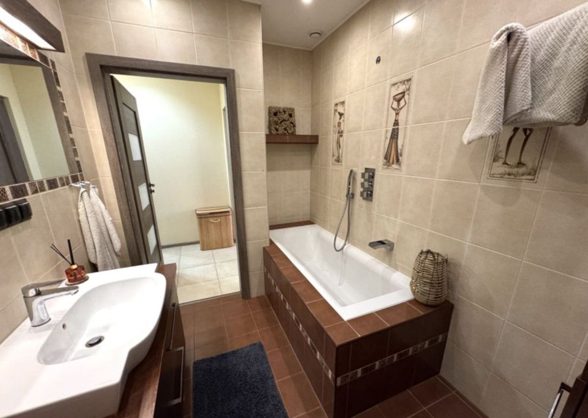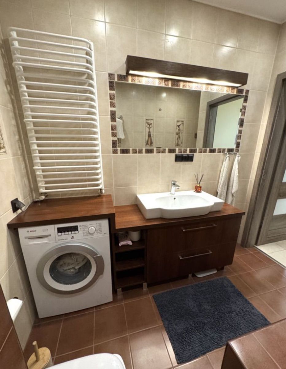 W pełni wyposażona z wanną oraz pralką.