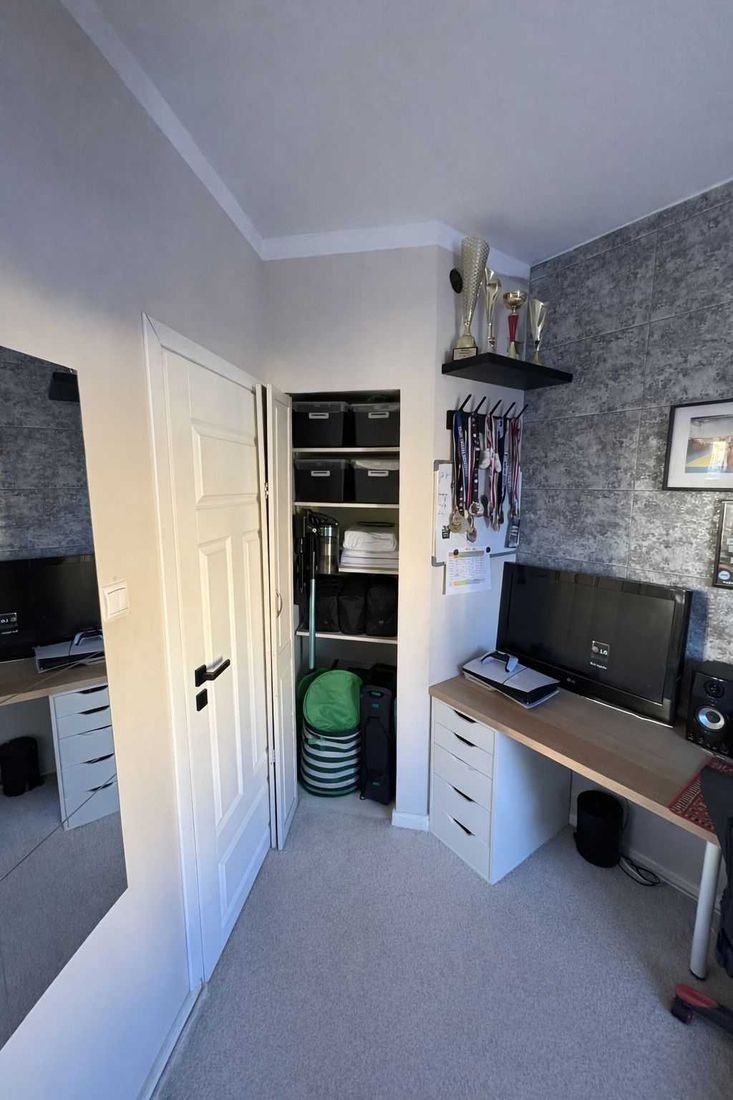 Idealny układ dla rodziny z wydzielonymi pokojami i dodatkową garderobą.