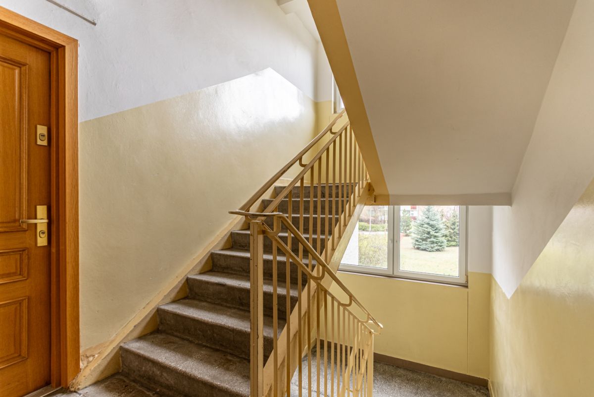 Mieszkanie znajduje się na pierwszym piętrze w budynku trzy piętrowym. Budynek położony w centralnym punkcie osiedla co zapewnia ciszę i widok na tereny zielone osiedla