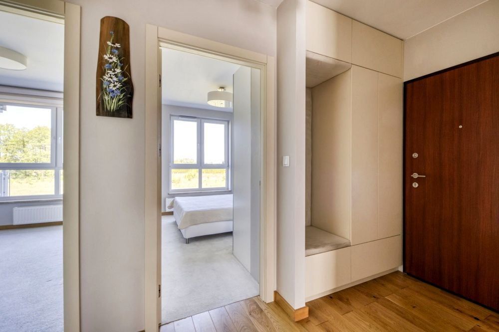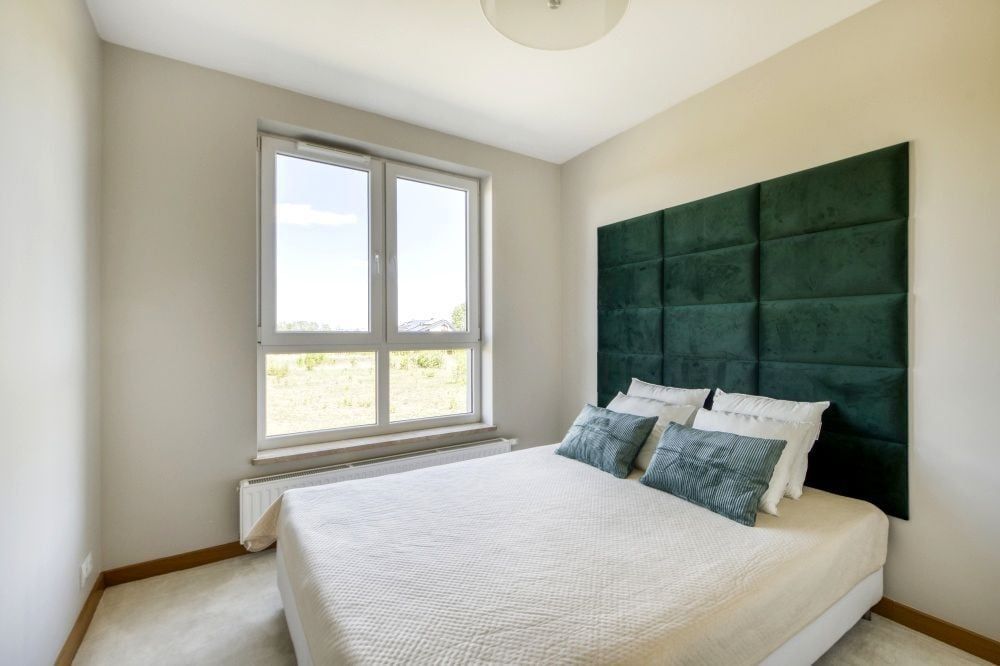 Ekspozycja północ-południe, duże przeszklenia w salonie i pokojach zapewniają dużo naturalnego światła i widok na zieleń.