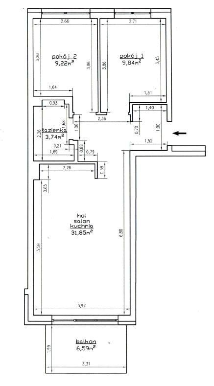 (kuchnia aktualnie oddzielona ścianką, można łatwo wrócić do aneksu)