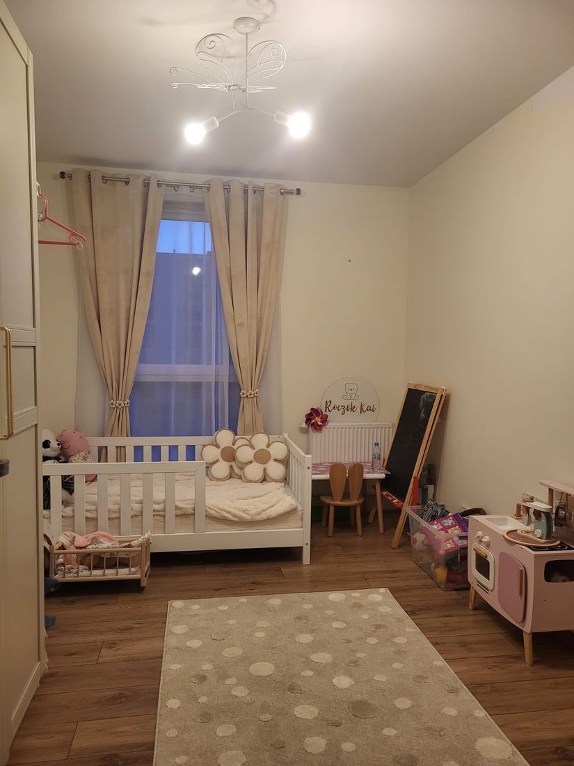 Mieszkanie znajduje się na zadbanym, zielonym osiedlu z całodobową ochroną, oferującym mieszkańcom liczne place zabaw, tereny rekreacyjne oraz lokale usługowe na terenie osiedla, co czyni je doskonałym miejscem dla rodzin z dziećmi. W najbliższej okolicy dostępna jest pełna infrastruktura handlowo-usługowa: sklepy spożywcze (m.in. Żabka, Chorten), piekarnia Putka, punkty gastronomiczne, fryzjer, barber, apteki oraz większe centra handlowe w krótkim dojeździe, takie jak Galeria Północna i Factory Annopol.