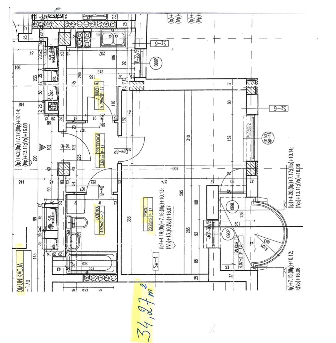 Mieszkanie o powierzchni 34,27 m² składa się z: