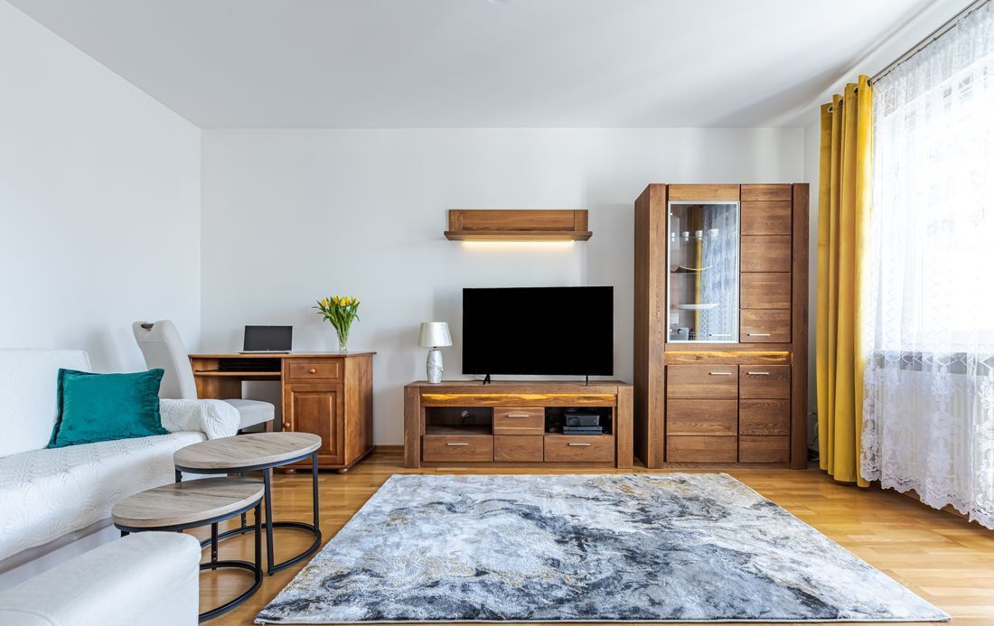 Drewniana podłoga w salonie i sypialniach.