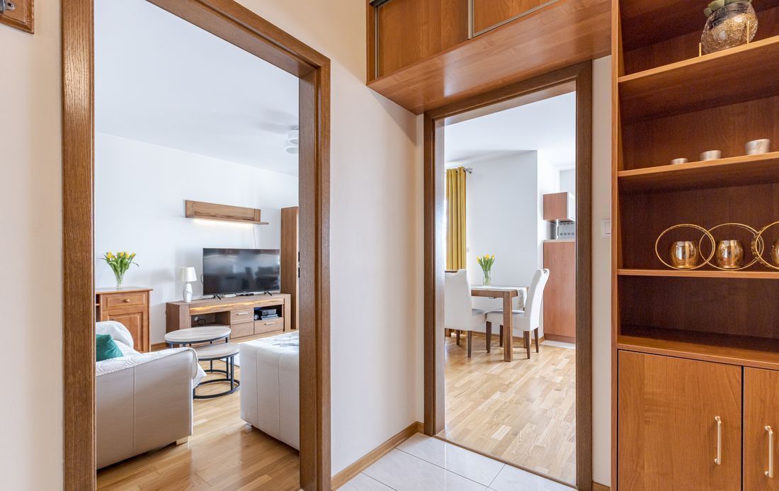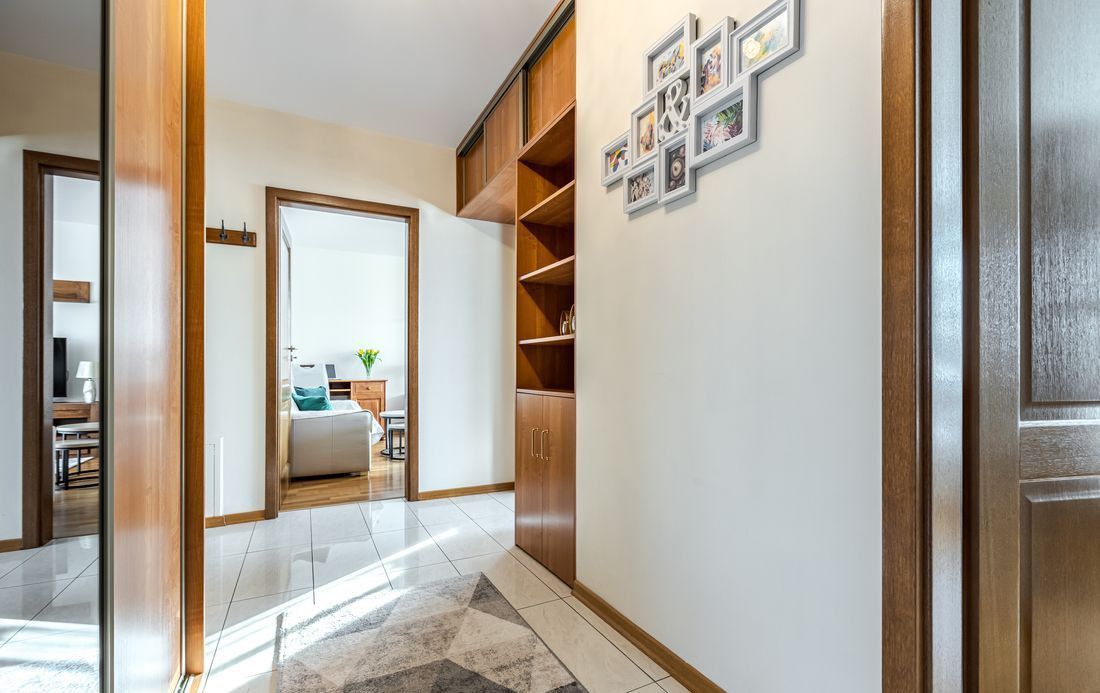 W przedpokoju pojemna szafa w zabudowie.