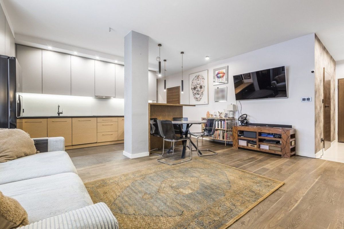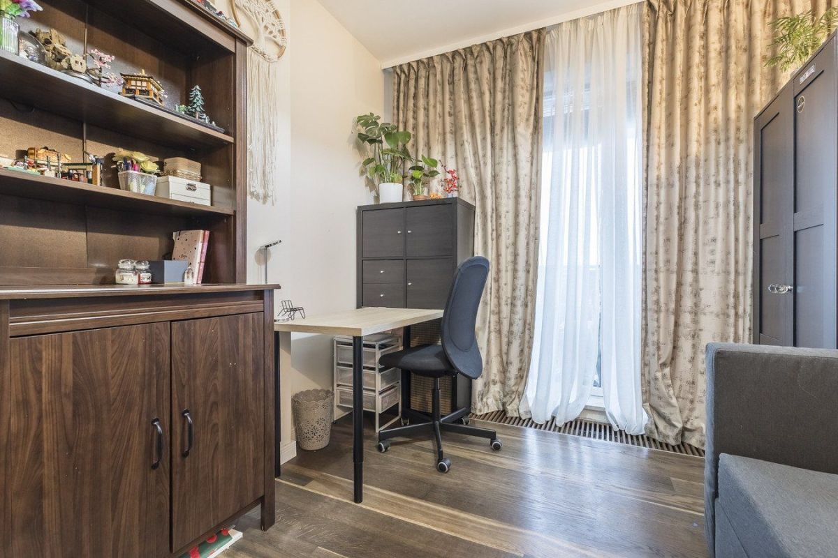 Mieszkanie zostało wykończone z myślą o własnych potrzebach właścicieli, z dużą dbałością o detale oraz funkcjonalność codziennego życia. Użyto materiałów wysokiej jakości - na podłodze znajduje się naturalne drewno zabezpieczone olejowaniem, a solidne, drewniane drzwi podkreślają charakter wnętrza. Przemyślane, praktyczne rozwiązania, takie jak liczne zabudowy i ukryte przestrzenie do przechowywania, sprawiają, że mieszkanie jest nie tylko estetyczne, ale przede wszystkim komfortowe i wygodne na co dzień.