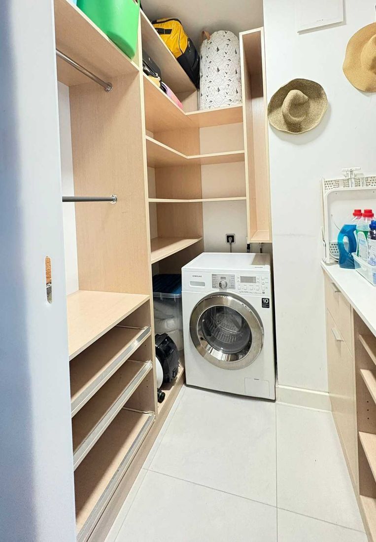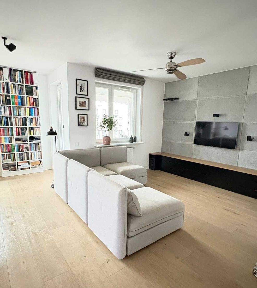 Mieszkanie jest dwu pokojowe (pierwotnie było 3 pokojowe i jest możliwość łatwej aranżacji i przywrócenia stanu pierwotnego). Dębowa podłoga, kuchnia w pełni wyposażona (zmywarka, lodówka, piekarnik) z kamiennymi blatami, ogrzewanie podłogowe, łazienka z wanną, prysznicem i deszczownicą oraz ogrzewaniem podłogowym, w salonie z kuchnią i w sypialni zainstalowane wiatraki, garderoba z zabudową meblową pod wymiar, 2 szafy w zabudowie pod wymiar.